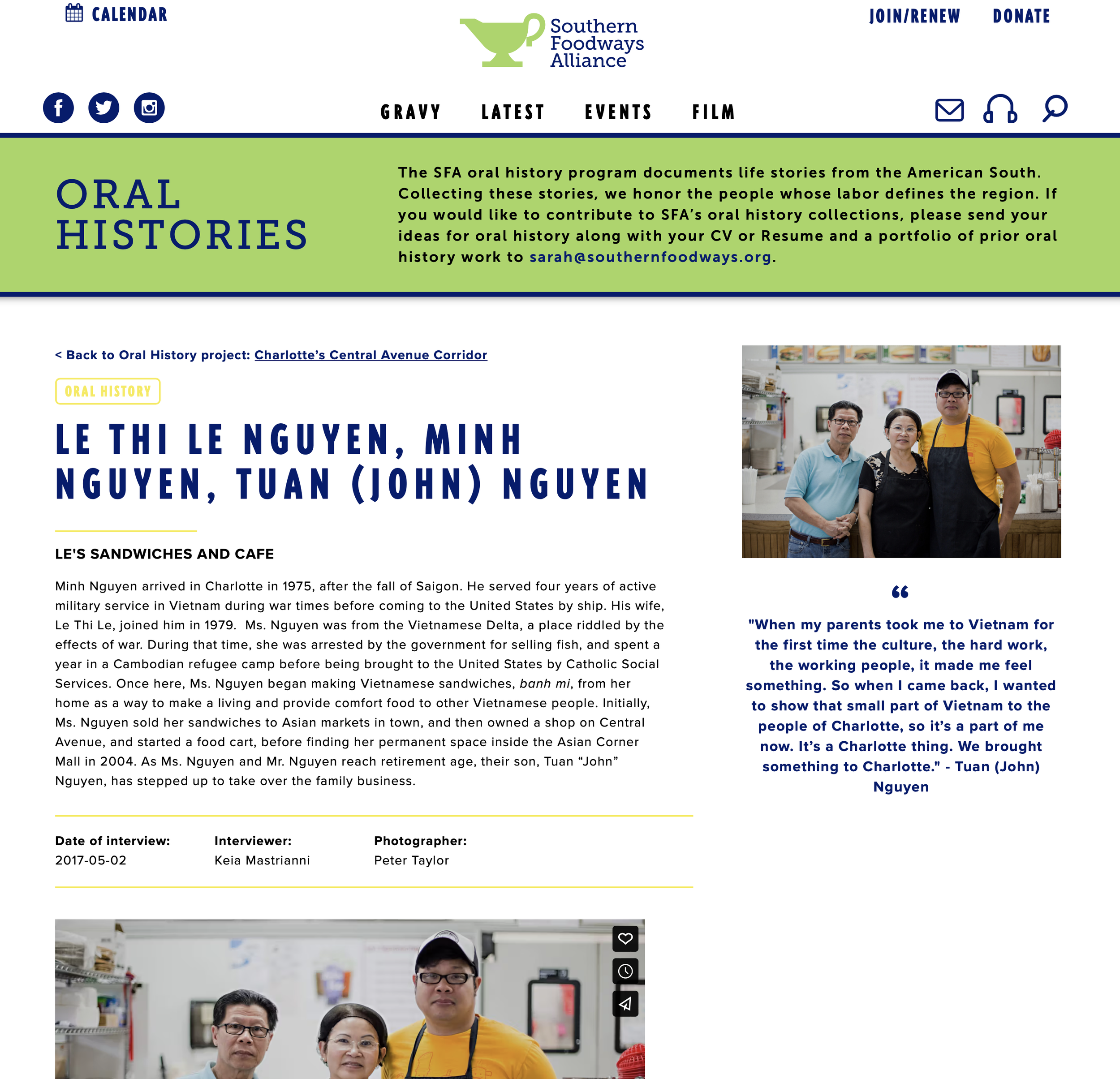 Oral History - Le’s Sandwiches & Cafe